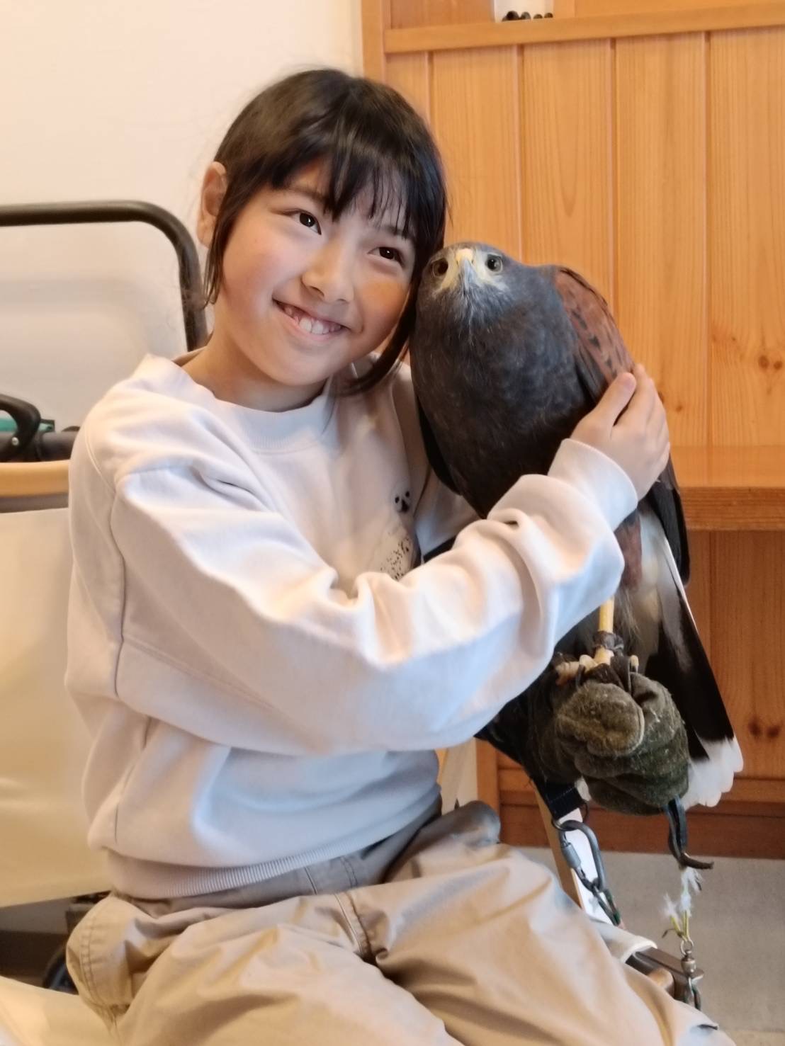 鳥さん大好き❤ 海ことひ(八丁浜) 2026.02.01 先日の大寒波の時に、鳥が大好きな可愛いお客さんが来てくれました♡ お洋服もアクセサリーも小物も鳥さんの模様を身に着けていて、鳥好きが伝わってきます🥰 のんびり触れ合いしてくれて、ハリスフォークのルカちゃんととっても仲良しになってくれました🦅 大雪の中ありがとうございました♪